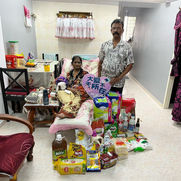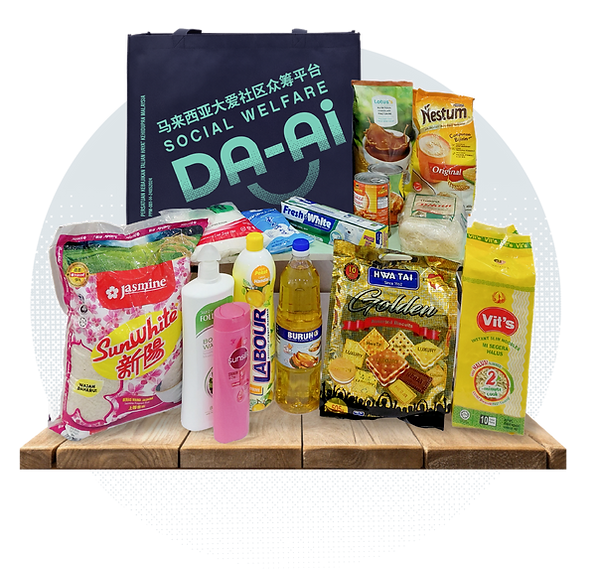 内含多样日常必需品:米、面条、饼干、Nestum 燕麦片、即溶饮品、罐头、食用油、洗发水、沐浴露、洗洁精及牙膏 等。